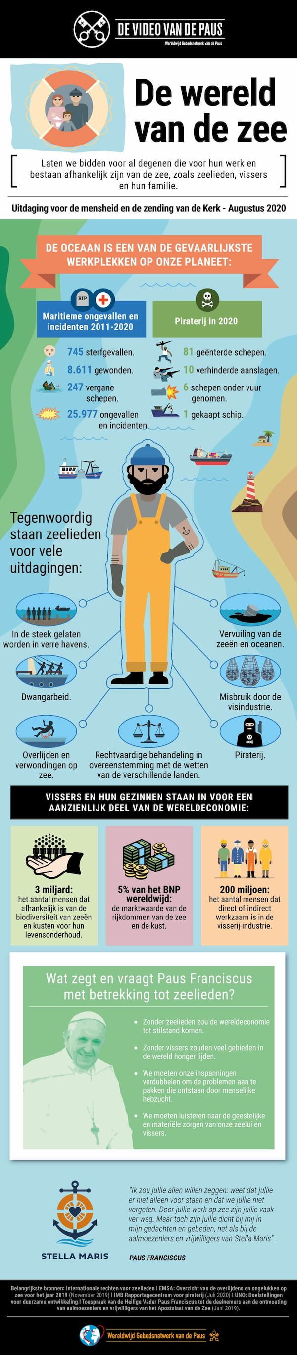 Zonder zeevarenden zouden grote delen van de wereld honger lijden. Laten we bidden voor alle mensen die werken en leven van de zee, waaronder de zeemannen, de vissers en hun families.