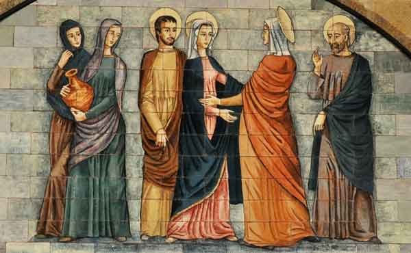 We komen daar aan. –Het is het huis waar Johannes de Doper geboren zal worden. –Elisabet bejubelt vol dankbaarheid de Moeder van de Verlosser: Gezegend zijt gij onder alle vrouwen, en gezegend is de vrucht van uw schoot! –Waaraan heb ik het te danken dat de Moeder van mijn Heer naar mij toe komt? (Lc. 1, 42–43).