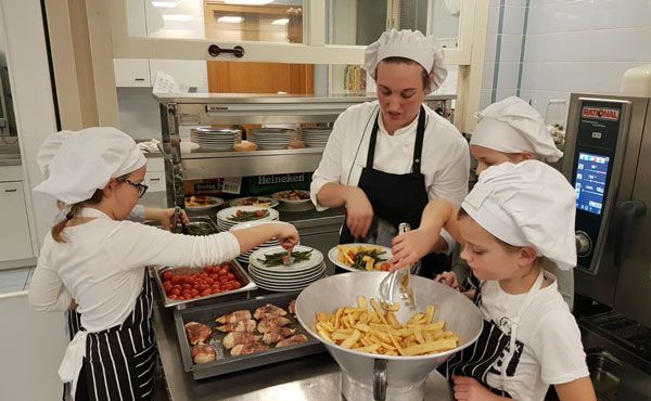 25 kinderen hadden zich aangemeld om het diner voor te bereiden onder begeleiding van professionals. De kinderen werden ingedeeld in verschillende werkgroepjes: voorgerecht, hoofdgerecht, dessert, restaurant voorbereiden en bediening.