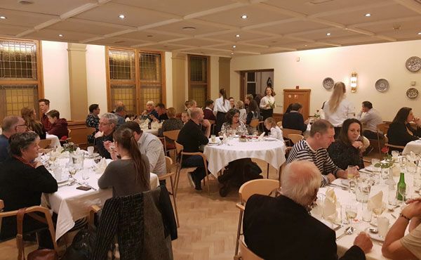 60 gasten arriveerden om 18:30 uur en genoten van een heerlijke maaltijd in een gezellige sfeer.