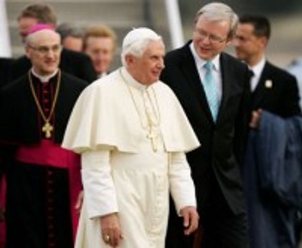 De Heilige Vader werd aan de vliegtuigtrap begroet door de minister-president van Australië, Kevin Rudd, de aartsbisschop van Sydney, kardinaal George Pell en andere burgerlijke en kerkelijke hoogwaardigheidsbekleders. Paus benedictus reisde daarna per auto door naar het Kenthurst Study Centre , waar hij zal verblijven tot en met woensdag 16 juli.