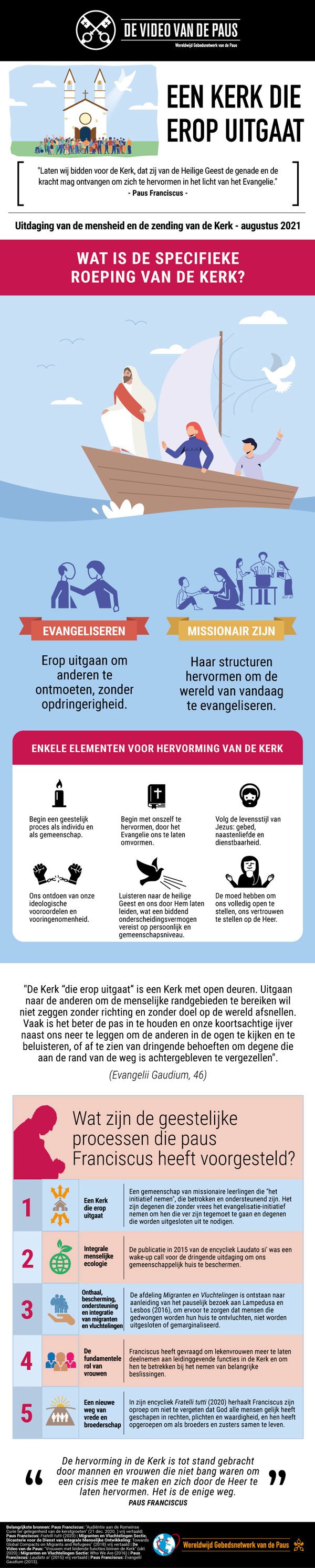 Laten we bidden voor de Kerk, opdat zij van de Heilige Geest de genade en de kracht mag ontvangen om zichzelf te hervormen in het licht van het Evangelie.”