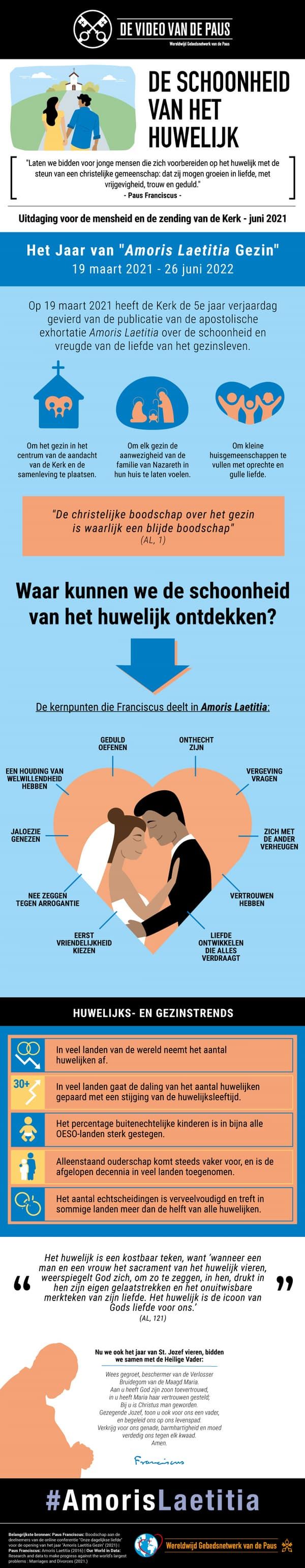 Zoals Franciscus zegt: “Het is een reis die inzet vraagt, soms moeilijk, soms ingewikkeld, maar de moeite waard om ervoor te gaan”. Om te trouwen, net zoals om op reis te gaan, moet je je goed voorbereiden. En begrijpen dat “het huwelijk niet alleen een 'sociale' daad is; het is een roeping die uit het hart komt”, zoals de paus zegt in de video van deze maand. Doe mee en verspreid deze vreugdevolle boodschap die ons eraan herinnert dat “het leven delen iets moois is”.