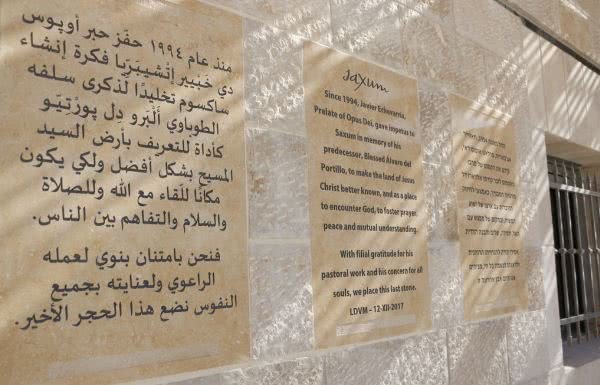 "Sinds 1994 was Javier Echevarria prelaat van het Opus Dei en gaf hij de impuls aan Saxum ter nagedachtenis aan zijn voorganger, zalige Alvaro del Portillo, om het land van Jezus Christus beter bekend te maken, als plaats om God te ontmoeten en gebed, vrede en wederzijds begrip te koesteren en te verzorgen.