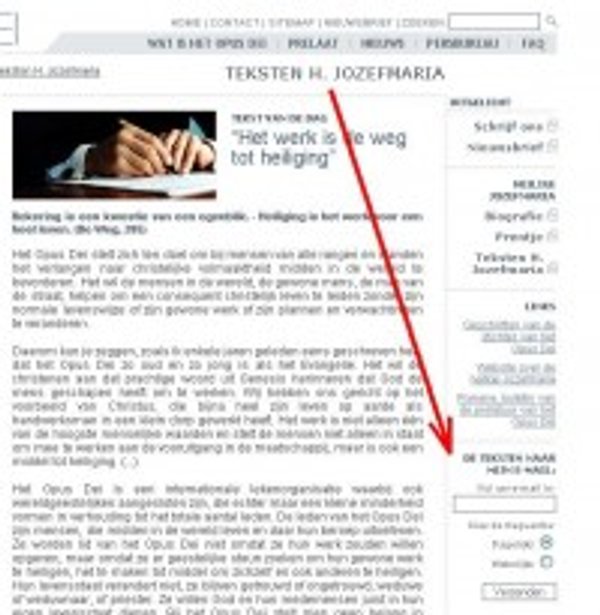 De lezer kan ervoor kiezen om de tekst dagelijks of wekelijks toegestuurd te krijgen. Klik met de muiscursor op ‘Teksten van de H. Jozefmaria’ aan de rechterzijde van de homepage en vul uw e-mailadres in in het veld onder het kopje ‘de teksten naar mijn e-mail’ eveneens aan de rechterzijde van de pagina. Klik vervolgens op ‘verzenden’. Daarna krijgt u een e-mail met het verzoek het abonnement te bevestigen.