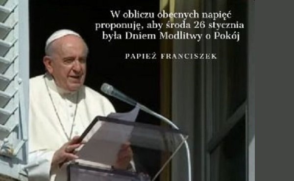"Ci, którzy realizują własne cele ze szkodą dla innych, gardzą własnym powołaniem jako istoty ludzkie, ponieważ wszyscy zostaliśmy stworzeni braćmi. Z tego powodu, i w obliczu obecnych napięć proponuję również, aby najbliższa środa, 26 stycznia była dniem modlitwy o pokój" – zaapelował papież Franciszek.