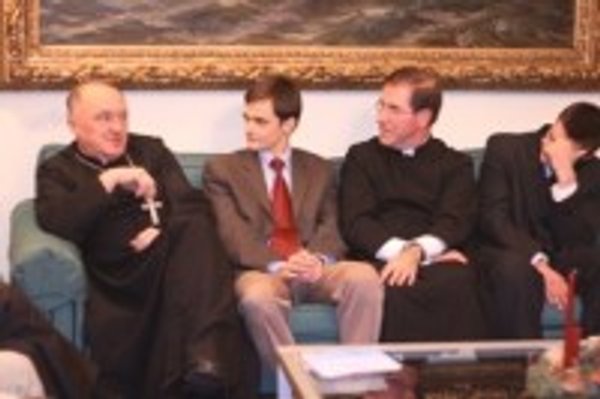 Łukasz - tegoroczny absolwent Wydziału Prawa i Administracji UW - przybliżył księdzu arcybiskupowi specyfikę letnich wyjazdów dla licealistów i studentów, tzw. workcampów. Polegają one na łączeniu pracy (np. pomocy przy budowie kościoła parafialnego w Przemyślu, sierocińca w miejscowości Stryj na Ukrainie, itd.), modlitwy i rozrywki.