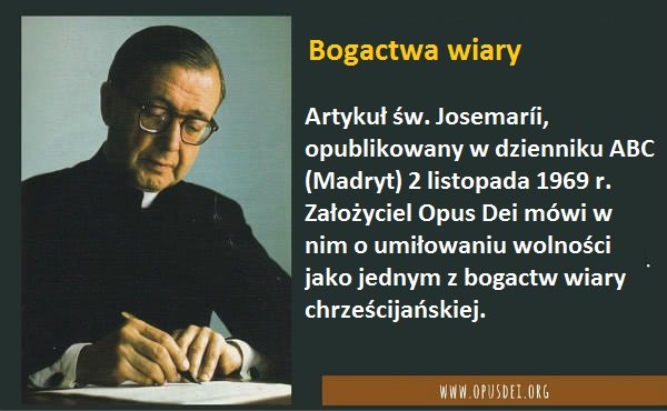 Nie jest moją misją mówienie o polityce. Nie taka jest też misja Opus Dei, ponieważ jego jedyny cel jest duchowy. Opus Dei nie wchodziło i nigdy nie wejdzie w politykę grup i partii, nie jest związane z żadną osobą czy ideologią. Taki sposób działania nie jest ani taktyką apostolską ani jedynie postawą godną pochwały. Dla Opus Dei jest to wewnętrzna potrzeba, ponieważ tego wymaga sama jego natura, czego znakomitym potwierdzeniem jest umiłowanie wolności: ufność, że chrześcijanin posiada swoje miejsce wśród świata, działając w pełni niezależnie i z osobistą odpowiedzialnością.
