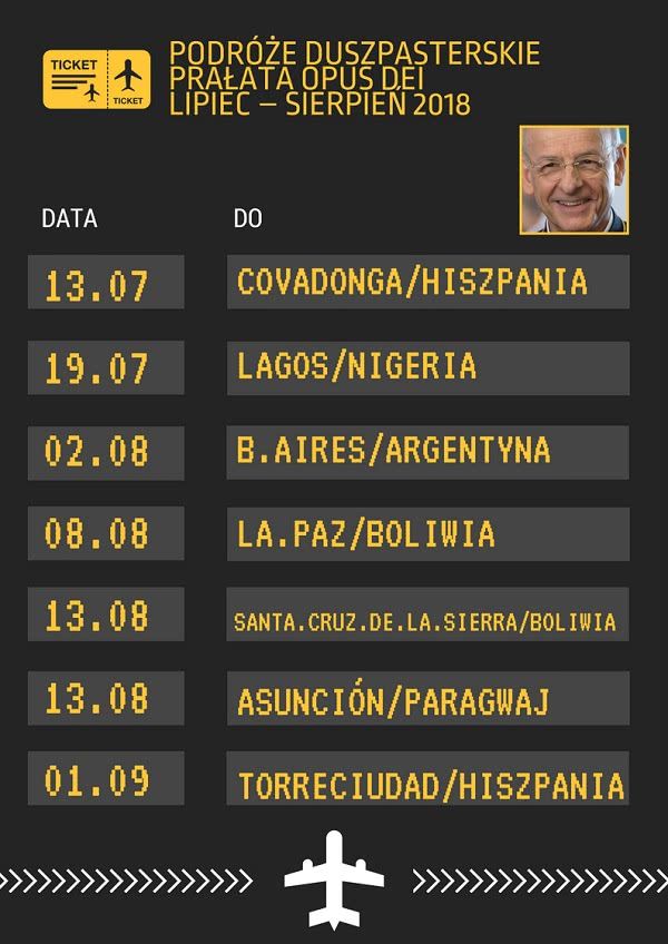 Jak w ubiegłym roku, ks. prał. Fernando Ocáriz w lipcu i sierpniu podejmie różne podróże duszpasterskie, by spotkać się z wiernymi Opus Dei, współpracownikami i przyjaciółmi.