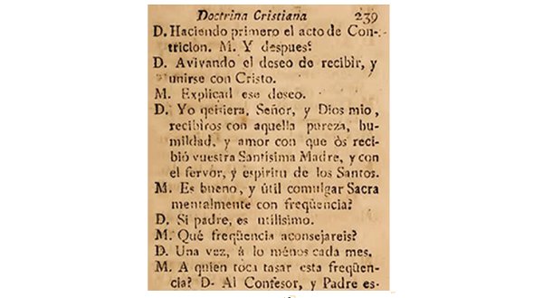 Na wszelki wypadek, w międzyczasie, umówiłem się w szkole oo. Pijarów z Alcañiz, gdzie autor katechizmu był rektorem. Poradzono mi odwiedzić oo. Pijarów w Saragossie, gdzie otrzymałem kopię tzw. głównego katechizmu: Wyjaśnienie doktryny chrześcijańskiej. Zgodnie z metodą nauczaną przez Ojców w szkołach Pijarów. Ułożone w formie Dialogu pomiędzy Mistrzem a Uczniem, przez O. Kajetana od św. Jana Chrzciciela, kapłana tych szkół. Został on opublikowany w Pampelunie w 1800 roku i ma 357 stron. Przeczytałem go krok po kroku i jakie było moje zdziwienie, gdy natknąłem się na następujący tekst, na stronie 308, gdzie autor zaprasza nas do ożywienia pragnienia przyjęcia Chrystusa, wyjaśniając również, jak to zrobić: Chciałbym przyjąć Cię, Panie i Boże mój, z tą samą czystością, pokorą i miłością, z jaką przyjęła Cię Twoja Najświętsza Matka, z duchem i zapałem Świętych.