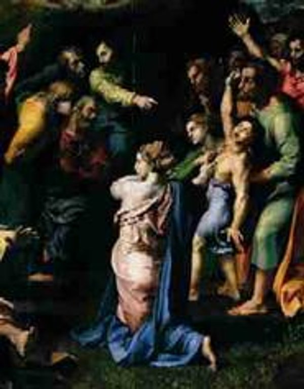 „Gdy przyszli do uczniów, ujrzeli wielki tłum wokół nich i uczonych w Piśmie, którzy rozprawiali z nimi. Skoro Go zobaczyli, zaraz podziw ogarnął cały tłum i przybiegając, witali Go. On ich zapytał: ‘O czym rozprawiacie z nimi?’. Odpowiedział Mu jeden z tłumu: ‘Nauczycielu, przyprowadziłem do Ciebie mojego syna, który ma ducha niemego. Ten, gdziekolwiek go chwyci, rzuca nim, a on wtedy się pieni, zgrzyta zębami i drętwieje. Powiedziałem Twoim uczniom, żeby go wyrzucili, ale nie mogli.’ On zaś rzekł do nich: ‘O plemię niewierne, dopóki mam być z wami? Dopóki mam was cierpieć? Przyprowadźcie go do Mnie!’. I przywiedli go do Niego. Na widok Jezusa duch zaraz począł szarpać chłopca, tak że upadł na ziemię i tarzał się z pianą na ustach. Jezus zapytał ojca: ‘Od jak dawna mu się to zdarza?’ Ten zaś odrzekł: ‘Od dzieciństwa. I często wrzucało nawet w ogień i w wodę, żeby go zgubić. Lecz jeśli możesz co, zlituj się nad nami i pomóż nam!’. Jezus mu odrzekł: ‘Jeśli możesz? Wszystko możliwe jest dla tego, kto wierzy.’ Natychmiast ojciec chłopca zawołał: ‘Wierzę, zaradź memu niedowiarstwu!’ A Jezus widząc, że tłum się zbiega, rozkazał surowo duchowi nieczystemu: ‘Duchu niemy i głuchy, rozkazuję ci, wyjdź z niego i nie wchodź więcej niego!’ A on krzyknął i wyszedł wśród gwałtownych wstrząsów. Chłopiec zaś pozostawał jak martwy, tak że wielu mówiło: ‘On umarł’. Lecz Jezus ujął go za rękę i podniósł, a on wstał. Gdy przyszedł do domu. Uczniowie pytali Go na osobności: ‘Dlaczego my nie mogliśmy go wyrzucić?’ Rzekł im: ‘Ten rodzaj można wyrzucić tylko modlitwą [i postem]” (Mk 9, 14–29).