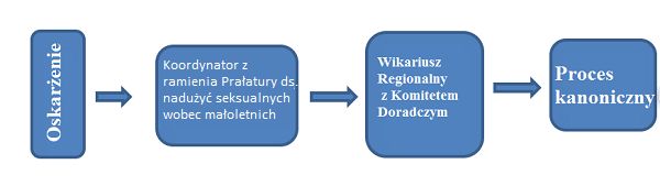 Oskarżenia są przedstawiane Koordynatorowi ds. ochrony nieletnich (Waldemar Roszkiewicz, dr stomatolog, 64 lat, ojciec czwórki dzieci, tel. kom. 503 187 931) lub za pośrednictwem następującego adresu: KoordynatorOpusDei@ gmail.com . Osoba kontaktująca się z oskarżycielem spisuje i sporządza raport z zeznań i przekazuje go do wiadomości Wikariusza Regionalnego, który w razie potrzeby dekretuje początek procesu kanonicznego. Aby podjąć tę decyzję, Wikariusz liczy na rady Komitetu złożonego z profesjonalistów w dziedzinie prawa i ochrony zdrowia.