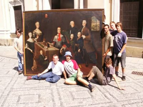 W poniedziałek do pracy. Podzieliliśmy zadania, stworzyliśmy mniejsze grupy. Marcin i Szymon zajęli się kuciem żelaza. Przemek rozdzielał zadania: pomoc w kuchni, wykopanie 2-metrowej fosy czy też pomoc w przeniesieniu obrazów z muzeum malarstwa do ich nowej siedziby. Pracowaliśmy od 10 rano do 2 po południu. Potem jedliśmy obiad, mieliśmy spotkanie i sport.