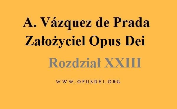 Cierpienie działało zawsze na Ojca oczyszczająco. Do tego stopnia rozjaśniało się jego wewnętrzne spojrzenie, że miał stałą, wyrazistą i niemalże namacalną świadomość straszliwych skutków, jakie niesie ze sobą rozmywanie się wiary we współczesnym świecie. Teraz przyszłość dziejów stanowiła dlań otwartą księgę, w której można było czytać o żałosnym zniszczeniu, do którego będzie zmierzać ludzkość, jeśli zostaną wypaczone rzeczywistości nadprzyrodzone. A gdzieś w tle tych kart otwierała się czarna czeluść, w której zatracały się dusze. Cierpienie, które przygotowywało założyciela Opus Dei do tych widzeń, było konsekwencją najintensywniejszej miłości do Chrystusa i do Jego Kościoła. Sprawiało, że czuł się osobiście odpowiedzialny za misję Kościoła. I nie mógł zrozumieć, dlaczego wobec wielkiego dzieła odkupienia chrześcijanie pozostają w postawie biernej, z opuszczonymi rękami, obojętni na ogólny upadek.