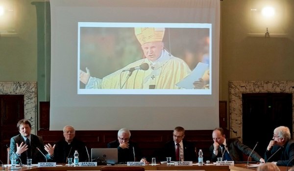 W ostatni czwartek, 21 listopada, na Papieskim Uniwersytecie Świętego Krzyża w Rzymie (PUSC), odbyła się konferencja naukowa pt. „Liturgie Jana Pawła II i ich wymiar społeczny”, zorganizowana przez Instytut Liturgii tego uniwersytetu oraz warszawskie Centrum Myśli Jana Pawła II. Był to element wspólnego programu naukowego tych dwu instytucji, kierowanego przez ks. prof. Kazimierza Gintera (PUSC) oraz dr. hab. Pawła Skibińskiego eksperta CMJPII i historyka z Uniwersytetu Warszawskiego. Rzymska sesja została objęta patronatem ambasadora Rzeczypospolitej Polskiej przy Stolicy Apostolskiej – Janusza Kotańskiego, wpisując się zarazem w obchody zbliżającego się stulecia urodzin Ojca św. Obrady toczyły się w językach włoskim i angielskim w Auli Benedykta XVI rzymskiego uniwersytetu , w obecności licznych przedstawicieli korpusu dyplomatycznego, profesorów uczelni oraz studentów.