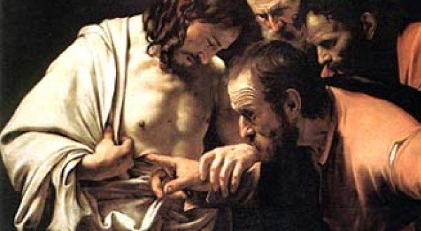Bardzo znana z kolei i wręcz przysłowiowa jest scena niedowierzającego Tomasza, która nastąpiła osiem dni po Passze. W pierwszej chwili nie uwierzył on w Jezusa, który ukazał się pod jego nieobecność, i rzekł: "Jeżeli na rękach Jego nie zobaczę śladu gwoździ i nie włożę palca mego w miejsce gwoździ, i nie włożę ręki mojej do boku Jego, nie uwierzę" (J 20, 25). W gruncie rzeczy ze słów tych przebija przekonanie, że Jezusa można obecnie poznać nie tyle z twarzy, ile raczej na podstawie ran. Tomasz uważa, że znakami znaczącymi dla tożsamości Jezusa są teraz przede wszystkim rany, które pokazują, jak bardzo nas umiłował. Tutaj Apostoł się nie myli. Jak wiemy, osiem dni później Jezus zjawia się ponownie wśród uczniów i tym razem obecny jest także Tomasz. I Jezus ponagla go: "Podnieś tutaj swój palec i zobacz moje ręce. Podnieś rękę i włóż ją do mego boku, i nie bądź niedowiarkiem, lecz wierzącym" (J 20, 27). Tomasz reaguje na to najwspanialszym wyznaniem wiary w całym Nowym Testamencie: "Pan mój i Bóg mój!" (J 20, 28). Tak komentuje to św. Augustyn: Tomasz "widział i dotykał człowieka, ale wyznawał swą wiarę w Boga, którego nie widział i nie dotykał. To jednak, co widział i czego dotykał, kazało mu wierzyć w to, w co do tego momentu wątpił" (In Iohann. 121,5). Ewangelista kończy ostatnim słowem Jezusa do Tomasza: "Uwierzyłeś dlatego, ponieważ Mnie ujrzałeś? Błogosławieni, którzy nie widzieli, a uwierzyli" (J 20, 29). Słowa te można także powiedzieć w czasie teraźniejszym: "Błogosławieni, którzy nie widzą, a jednak wierzą".