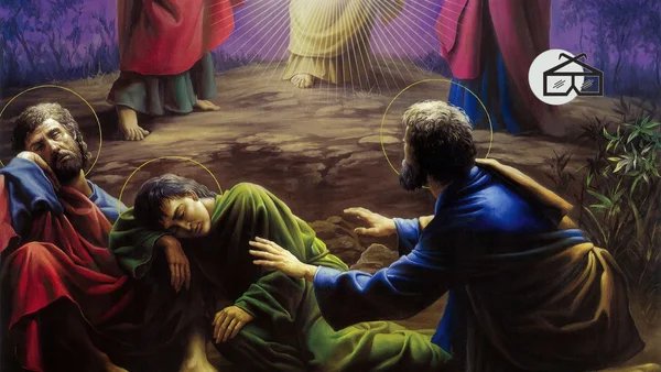 Gdy Piotr «jeszcze mówił, oto obłok świetlany osłonił ich, a z obłoku odezwał się głos: «To jest mój Syn umiłowany, w którym mam upodobanie, Jego słuchajcie!»» (Mt 17, 5). Trzej uczniowie, przerażeni tym, co właśnie usłyszeli, padli na twarze. Jezus przyszedł do nich i dotykając ich, powiedział: «Wstańcie i nie lękajcie się» (Mt 17, 7).