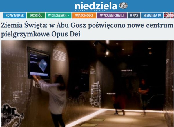 W Abu Gosz koło Jerozolimy zostało otwarte nowe centrum multimedialne prowadzone przez prałaturę Opus Dei. „Saxum Visitor Center” ma ułatwiać pielgrzymom w historycznym, geograficznym i biblijnym zrozumieniu różnych miejsc w Ziemi Świętej oraz wydarzeń w dziejach zbawienia”, powiedział podczas uroczystości poświęcenia tego miejsca administrator apostolski Patriarchatu Łacińskiego Jerozolimy, abp Pierbattista Pizzaballa OFM. W uroczystości obok duchowieństwa zakonnego i wiernych, uczestniczył także wikariusz generalny Opus Dei, ks. Mariano Fazio.