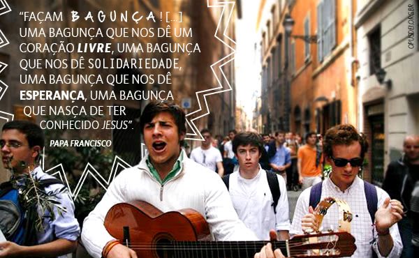 7. "Façam bagunça! Mas também ajudem a arrumar e organizar a bagunça que vocês fazem. Duas coisas: façam bagunça e organizem-na bem. Uma bagunça que nos dê um coração livre, uma bagunça que nos dê solidariedade, uma bagunça que nos dê esperança, uma bagunça que nasça de ter conhecido Jesus e de saber que Deus, a quem conheci, é a minha fortaleza". Discurso preparado para o encontro com os jovens na Costanera de Asunción, no dia 12 de julho.