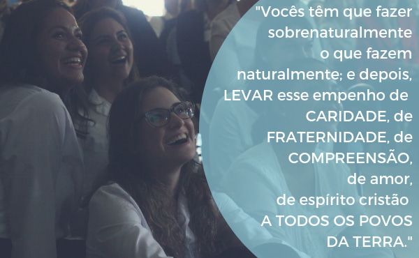 3. “Vocês têm que fazer sobrenaturalmente o que fazem naturalmente; e depois, levar esse empenho de caridade, de fraternidade, de compreensão, de amor, de espírito cristão a todos os povos da terra. Entendo que o povo brasileiro é e será um grande povo missionário, um grande povo de Deus, e que vocês saberão cantar as grandezas do Senhor por toda a terra” (Francisco Faus, São Josemaria Escrivá no Brasil, p. 96).