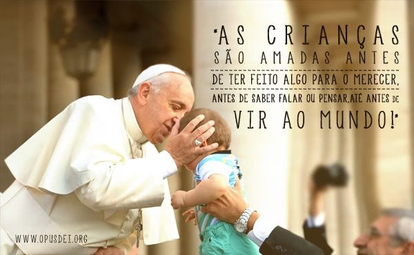 7. “[...] As crianças são amadas antes de vir ao mundo. É algo gratuito, isto é amor; elas são amadas antes do nascimento, como o amor de Deus que nos ama sempre antes. São amadas antes de ter feito algo para o merecer, antes de saber falar ou pensar, até antes de vir ao mundo! Ser filho é a condição fundamental para conhecer o amor de Deus". Audiência Geral, 11 de fevereiro de 2015.