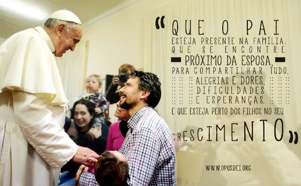 5. “[...]que o pai estejapresente na família. Que se encontre próximo da esposa, para compartilhar tudo, alegrias e dores, dificuldades e esperanças. E que esteja perto dos filhos no seu crescimento". Audiência Geral, 4 de fevereiro de 2015.