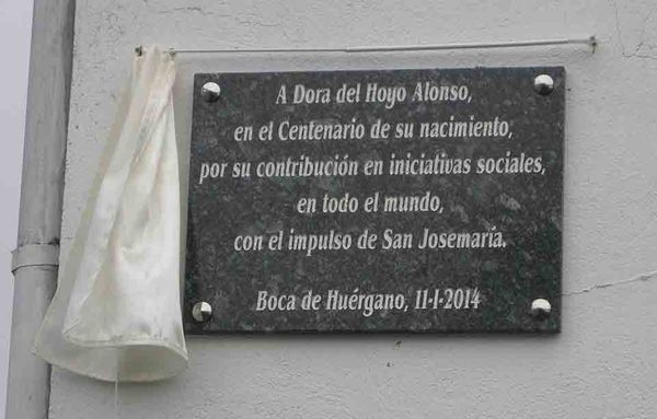 Várias centenas de pessoas participaram do ato, que começou na casa da família del Hoyo, onde o prefeito Tomás Sierra, descerrou uma placa comemorativa com a seguinte inscrição: "A Dora Del Hoyo Alonso, no Centenário do seu nascimento, pela sua contribuição em iniciativas sociais em todo o mundo, com o impulso de São Josemaria. Boca de Huérgano, 11 de janeiro de 2014".
