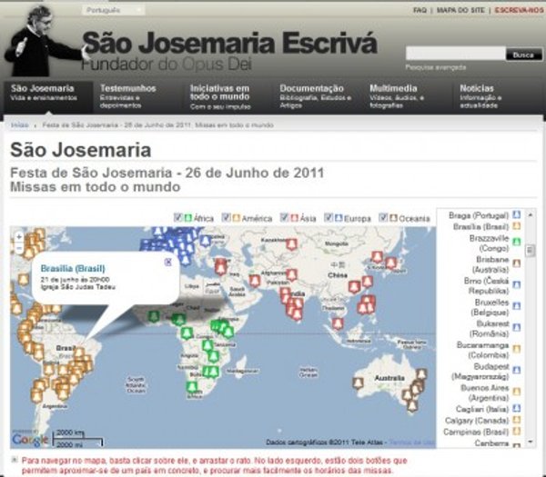 Os dados serão atualizados diariamente. Como, graças a Deus, é impossível recolher todas as celebrações, nesse mapa se remete ao site do Opus Dei do país correspondente, onde se pode encontrar a relação completa das Missas nessa região.