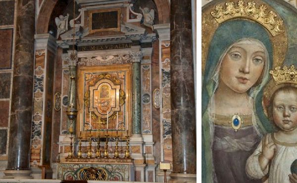 Mais adiante, não podia faltar a saudação a Nossa Senhora: habitualmente fazia-a diante da Madonna do Socorro. A sua capela está situada na nave direita, a seguir à do Santíssimo, e toma o nome de um quadro da Virgem pintado no século XI, que já se encontrava na primitiva basílica vaticana.