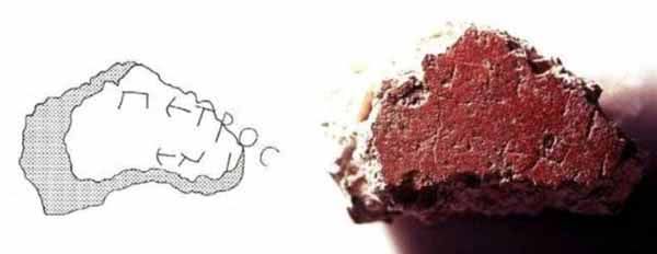 Uma dessas inscrições tinha sido gravada junto a uma pequena cavidade, ou abertura no muro. Esse nicho continha os restos de um homem idoso, de constituição robusta, e que tinham sido, em dado momento, envolvidos num lençol cor púrpura e ouro. A inscrição sobre a cavidade, em grego, dizia: PETROS ENI, Pedro está aqui.