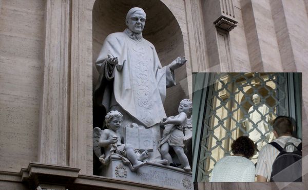 Há outro lugar da Basílica que desde 14 de Setembro de 2005 tem recebido muitas visitas de fiéis do Opus Dei, cooperadores e amigos. Na nave da esquerda, pouco depois do túmulo de São Pio X, fica a entrada da grandiosa Sacristia de São Pedro. Através das janelas do corredor – na realidade uma passagem aérea – que conduz a esse recinto pode observar-se a estátua do fundador do Opus Dei colocada nos muros exteriores do templo. Parar ali para contemplar o gesto acolhedor de São Josemaria é uma ocasião única para lhe pedir que faça crescer cada vez mais o amor à Igreja e ao Papa de todos os fiéis cristãos.