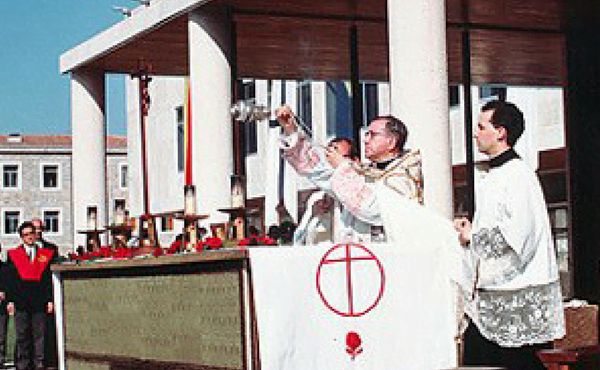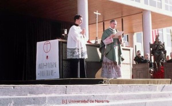 Era Domingo o dia 8 de Outubro de 1967. Josemaria Escrivá celebrou a Santa Missa ao ar livre, com o altar junto às colunas que sustentam o pórtico do antigo Edifício das Bibliotecas. Uma multidão – milhares de pessoas – unida aos Amigos naquela sagrada celebração, ocupava a grande esplanada que envolve o Edifício Central e o antigo espaço das Bibliotecas. Estava um dia de sol radioso. D. Javier Echevarría – atual Prelado do Opus Dei, – e o Pe. Alfredo García Suárez, já falecido, ajudavam na Missa que o Fundador da Obra celebrava.