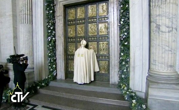 Daqui a pouco, terei a alegria de abrir a Porta Santa da Misericórdia. Este gesto, como fiz em Bangui, simples mas altamente simbólico, realizamo-lo à luz da Palavra de Deus escutada que põe em evidência a primazia da graça. Na verdade, o tema que mais vezes aflora nestas Leituras remete para aquela frase que o anjo Gabriel dirigiu a uma jovem mulher, surpresa e turbada, indicando o mistério que a iria envolver: «Salve, ó cheia de graça» (Lc 1, 28).