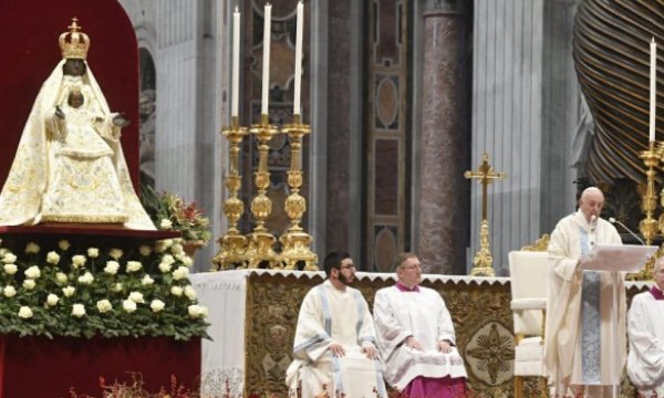 No primeiro dia do ano, celebramos estas núpcias entre Deus e o homem, inauguradas no seio de uma mulher. Em Deus, estará para sempre a nossa humanidade, e Maria será a Mãe de Deus para sempre. É mulher e mãe: isto é o essencial. D’Ela, mulher, surgiu a salvação e, assim, não há salvação sem a mulher. N’Ela, Deus uniu-Se a nós e, se queremos unir-nos a Ele, temos de passar pela mesma estrada: por Maria, mulher e mãe. Por isso, começamos o ano sob o signo de Nossa Senhora, mulher que teceu a humanidade de Deus. Se quisermos tecer de humanidade a trama dos nossos dias, devemos recomeçar da mulher.