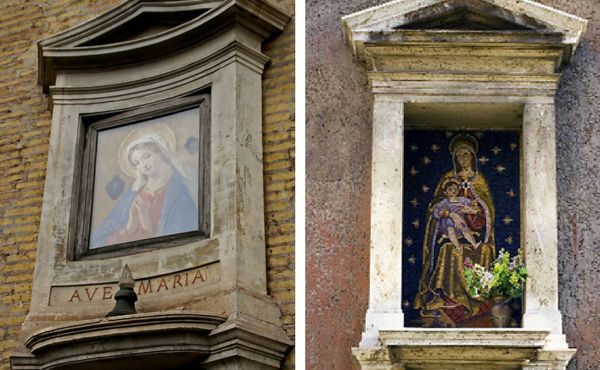 No centro histórico de Roma há cerca de quinhentas “edicole” da Virgem Maria. Até meados do século XIX eram quase três mil, mas muitas desapareceram com as transformações urbanísticas realizadas a partir de 1870. A palavra “edícula” designa uma pequena construção, a modo de templete, ou vitrine, que protege a imagem das inclemências do tempo.
