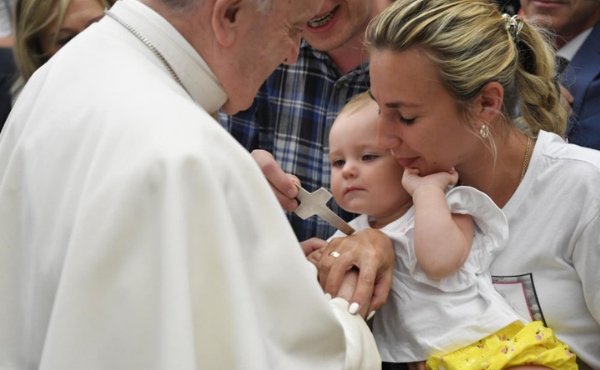 Hoje deparamo-nos com a primeira narração de cura, diante de um milagre, que é a primeira narração de cura do Livro dos Atos. Ela tem uma clara finalidade missionária, que visa suscitar a fé. Pedro e João vão rezar no Templo, centro da experiência de fé de Israel, à qual os primeiros cristãos ainda estão fortemente ligados. Os primeiros cristãos rezavam no Templo de Jerusalém. Lucas indica a hora: é a hora nona, ou seja, três da tarde, quando o sacrifício era oferecido em holocausto, como sinal da comunhão do povo com o seu Deus; e também a hora em que Cristo morreu, imolando-se a si mesmo «uma vez para sempre» (Hb 9, 12; 10, 10). E à porta do Templo chamada “Formosa” — a porta Formosa — veem um mendigo, um paralítico de nascença. Por que razão aquele homem estava à porta? Porque a Lei mosaica (cf. Lv 21, 18) impedia a oferenda de sacrifícios por parte de quem tivesse deficiências físicas, consideradas como consequências de alguma culpa. Recordemos que diante de um cego de nascença, o povo tinha perguntado a Jesus: «Quem foi que pecou para que este homem nascesse cego, ele ou os seus pais?» (Jo 9, 2). De acordo com essa mentalidade, existe sempre uma culpa na origem de uma malformação. E em seguida foi-lhes negado até o acesso ao Templo. O coxo, paradigma dos numerosos excluídos e descartados da sociedade, está ali a pedir esmolas como todos os dias. Não pode entrar, mas está diante da porta. E eis que acontece algo inesperado: chegam Pedro e João, e desencadeia-se um jogo de olhares. O aleijado fita os dois para pedir uma esmola; os Apóstolos, ao contrário, olham para ele, convidando-o a fitá-los de maneira diversa, para receber outro dom. O coxo olha para eles e Pedro diz-lhe: «Não tenho ouro nem prata, mas o que tenho, isto te dou: em nome de Jesus Cristo, o Nazareno, levanta-te e caminha!» (At 3, 6). Os Apóstolos estabeleceram uma relação, porque este é o modo como Deus gosta de se manifestar, na relação, sempre no diálogo, sempre nas aparições, sempre com a inspiração do coração: trata-se de relações de Deus conosco; através de um encontro real entre as pessoas, que só pode verificar-se no amor.