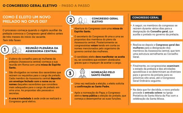 O processo começa quando o vigário auxiliar da prelazia - se houver; se não o vigário geral - convoca a data para o início do Congresso geral eletivo, antes de passarem três meses do início da vacante. Há três fases: a reunião plenária da Assessoria central, a realização do Congresso geral eletivo, e a nomeação do prelado pelo Santo Padre.