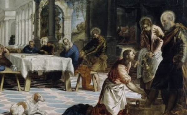 Agora, na Última Ceia, Cristo preparou tudo para se despedir dos seus discípulos, enquanto eles se emaranham numa enésima contenda sobre qual desse grupo eleito será considerado o maior. Jesus levantou-se da mesa, depôs o manto e, tendo tomado uma toalha, cingiu-se com ela. Depois, lançou água numa bacia e começou a lavar os pés dos discípulos e a limpar-lhos com a toalha com que se tinha cingido.