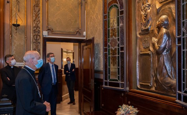 Na basílica, o reitor, Pe. Fermín Delgado, cumprimentou o prelado. Depois foram juntos rezar diante de Nossa Senhora e do baixo-relevo que fica atrás da imagem, que representa São Josemaria rezando aos pés de Nossa Senhora das Mercês.