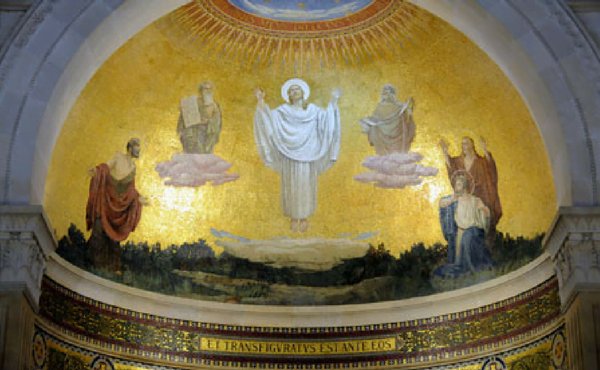 Embora no Novo Testamento não apareça citado pelo seu nome, a tradição rapidamente identificou o Tabor como o lugar da transfiguração do Senhor: Jesus levou consigo Pedro, João e Tiago, e subiu à montanha para orar. Enquanto orava, seu rosto mudou de aparência e sua roupa ficou branca e brilhante. Dois homens conversavam com ele: eram Moisés e Elias. Apareceram revestidos de glória e conversavam sobre a saída deste mundo que Jesus iria consumar em Jerusalém. Pedro e os companheiros estavam com muito sono. Quando acordaram, viram a glória de Jesus e os dois homens que estavam com ele. E enquanto esses homens iam se afastando, Pedro disse a Jesus: “Mestre, é bom ficarmos aqui. Vamos fazer três tendas: uma para ti, outra para Moisés e outra para Elias”. Nem sabia o que estava dizendo[8].