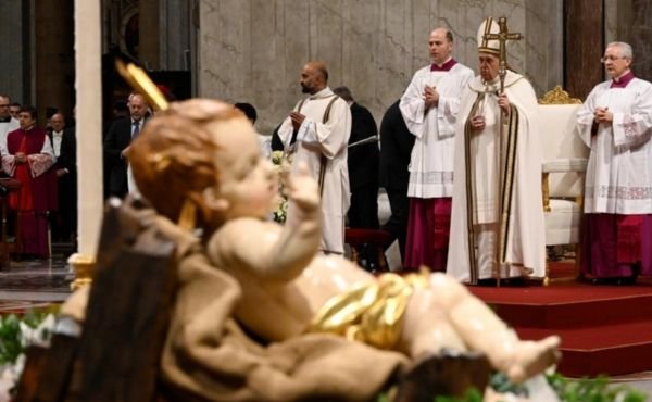 Irmãos e irmãs, nesta noite, o amor muda a história. Fazei, Senhor, que acreditemos no poder do vosso amor, tão diverso do poder do mundo. Senhor, fazei que, à semelhança de Maria, José, os pastores e os magos, nos estreitemos ao vosso redor para Vos adorar. Feitos por Vós mais semelhantes a Vós, poderemos testemunhar ao mundo a beleza do vosso rosto.