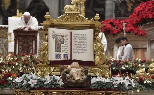 Em Belém, descobrimos que a vida de Deus corre nas veias da humanidade. Se a acolhermos, a história muda a partir de cada um de nós; com efeito, quando Jesus muda o coração, o centro da vida já não é o meu «eu» faminto e egoísta, mas Ele, que nasce e vive por amor. Nesta noite, chamados a ir até Belém, casa do pão, interroguemo-nos: Qual é o alimento de que não posso prescindir na minha vida? É o Senhor ou outra coisa qualquer? Depois, entrando na gruta, ao vislumbrar na terna pobreza do Menino uma nova fragrância de vida, a da simplicidade, perguntemo-nos: Será verdade que preciso de tantas coisas, de receitas complicadas para viver? Quais são os contornos supérfluos de que consigo prescindir para abraçar uma vida mais simples? Em Belém, ao pé de Jesus, vemos pessoas que caminharam, como Maria, José e os pastores. Jesus é o Pão do caminho. Não Se compraz com as digestões lentas, longas e sedentárias, mas pede que nos levantemos rapidamente da mesa a fim de servir como pães partidos para os outros. Perguntemo-nos: No Natal, reparto o meu pão com aqueles que estão sem ele?