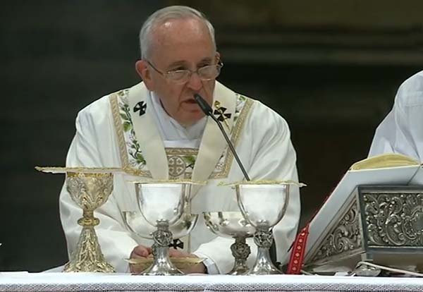 Faz-nos muito bem entrar, com o Salmista, neste solilóquio do nosso Deus. Ele fala de nós, os seus sacerdotes, os seus padres; na realidade, porém, não é um solilóquio, não fala sozinho. É o Pai que diz a Jesus: «Os teus amigos, aqueles que Te amam, poderão dizer-Me de uma maneira especial: “Tu és o meu Pai"» (cf. Jo 14, 21). E, se o Senhor pensa e Se preocupa tanto com o modo como poderá ajudar-nos, é porque sabe que a tarefa de ungir o povo fiel não é fácil, é dura; causa fadiga e leva-nos ao cansaço. E nós experimentamo-lo em todas as suas formas: desde o cansaço habitual do trabalho apostólico diário até ao da doença e da morte, incluindo o consumar-se no martírio.