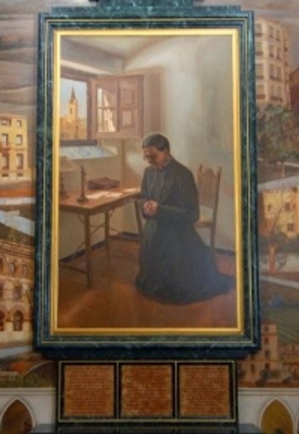 Para cumprir a missão que Deus lhe encomendava, São Josemaria prosseguiu seu trabalho sacerdotal nos bairros mais pobres e entre os doentes dos hospitais de Madri, e foi confiada e assiduamente à proteção da Santíssima Virgem, Mãe de Deus e Mãe nossa. São Josemaria rezou também, em muitas ocasiões, ante a sagrada imagem que preside o retábulo desta Paróquia. LAUS DEO VIRGINIQUE MATRI!