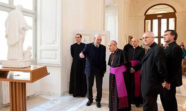 São três horas da tarde. A exposição de arte sacra de Romano Cosci ocupa o luminoso corredor do primeiro piso do “palazzo”, sede da Universidade Pontifícia da Santa Cruz. O artista dispõe-se a comentar algumas obras de S. Josemaria. Mas faz uma pausa antes de começar: