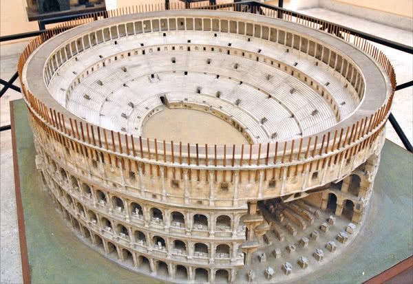 O anfiteatro Flávio, que era o seu nome original, reflete o gênio romano, capaz de acometer empresas de grande envergadura e ao mesmo tempo dando grande atenção aos ínfimos pormenores práticos. Tudo nesta construção estava pensado para que as suas enormes dimensões e a sua solidez não prejudicassem nem a beleza nem a funcionalidade. O equilíbrio arquitetônico conseguiu-se graças aos três andares de arcadas, em que se distribuíram sabiamente os espaços para dar uma sensação de leveza. O sentido prático estava presente numa enorme quantidade de aspectos: nos acessos, com mais de oitenta portas que permitiam encher e esvaziar o anfiteatro em poucos minutos; na distribuição dos lugares sentados, calculada para que de cada um dos cinquenta mil lugares se pudesse ver perfeitamente a arena; no sistema de toldos que protegiam a multidão do sol e da chuva, e que eram estendidos por uma equipe de cem soldados da marinha; na complexa rede de subterrâneos, onde havia ascensores de roldanas para içar os combatentes e as feras…