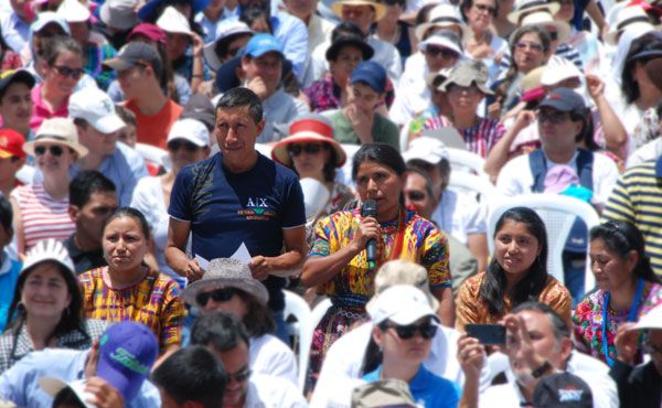 Depois foi a vez de Dominga, que falou em Cakchiquel, uma das línguas maias mais faladas na Guatemala. O seu marido traduziu a pergunta, dizendo que queria saber como ajudar suas filhas na sua vocação. O Padre respondeu que a tarefa deles como pais não terminou, deveriam rezar sempre pela fidelidade de suas filhas e ser muito agradecidos a Deus por esta grande predileção.