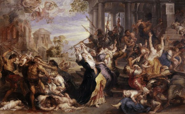 A matança dos inocentes pertence, como o episódio da estrela dos Reis Magos, ao evangelho da infância de São Mateus. Os Magos haviam perguntado pelo rei dos judeus (Mt 2, 1) e Herodes – que ocupava o posto de rei dos judeus na época – inventa um estratagema para averiguar quem poderia ser aquele que considerava um potencial usurpador, pedindo aos Magos que o informassem ao seu regresso. Quando sabe que voltaram por outro caminho, “ficou muito irado e mandou massacrar, em Belém e nos seus arredores, todos os meninos de dois anos para baixo, conforme o tempo exato que havia indagado aos Magos" (Mt 2,16).