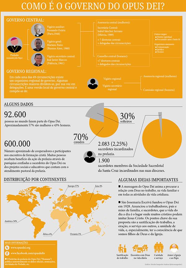É característica do governo do Opus Dei a participação conjunta de sacerdotes e leigos. O cargo de Prelado e os ofícios vicários estão reservados a sacerdotes, porque só os ministros ordenados podem ser portadores da potestade de regime na Igreja; mas no governo colaboram leigos, tanto mulheres como homens, como prevê o Direito Canônico (cfr. CIC, c. 129). Esta presença de leigos nos órgãos de governo é uma realidade fundacional do Opus Dei, que São Josemaria sublinhou sempre com força.