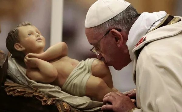 Os pastores encontram “Maria, José e o menino deitado na manjedoura” (Lc 2, 16). A manjedoura é sinal de alegria para os pastores: confirma o que tinham sabido do anjo (cf. 2, 12), é o lugar onde encontram o Salvador. E é também a prova de que Deus está junto deles: nasce numa manjedoura, objeto bem conhecido deles, demonstrando assim ser-lhes próximo e familiar. Mas a manjedoura é um sinal de alegria também para nós: Jesus, nascendo pequenino e pobre, toca-nos o coração, incute-nos amor em vez de temor. A manjedoura preanuncia-nos que Ele Se fará alimento para nós. E a sua pobreza é uma boa notícia para todos, especialmente para os marginalizados, para os rejeitados, para quem não conta no mundo. Ali desce Deus: nenhuma via preferencial, nem sequer um berço! Eis por que é bom vê-Lo deitado numa manjedoura.